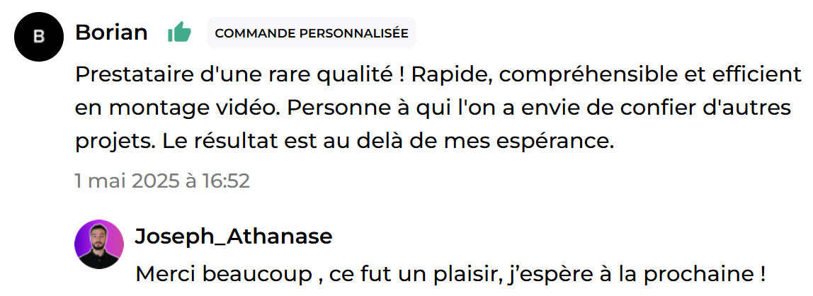 Tu as un projet vidéo en tête ? Parlons-en ! Que tu sois créateur, entrepreneur ou une marque, je t’accompagne pour donner vie à tes idées avec un montage soigné, dynamique et adapté à ton univers.